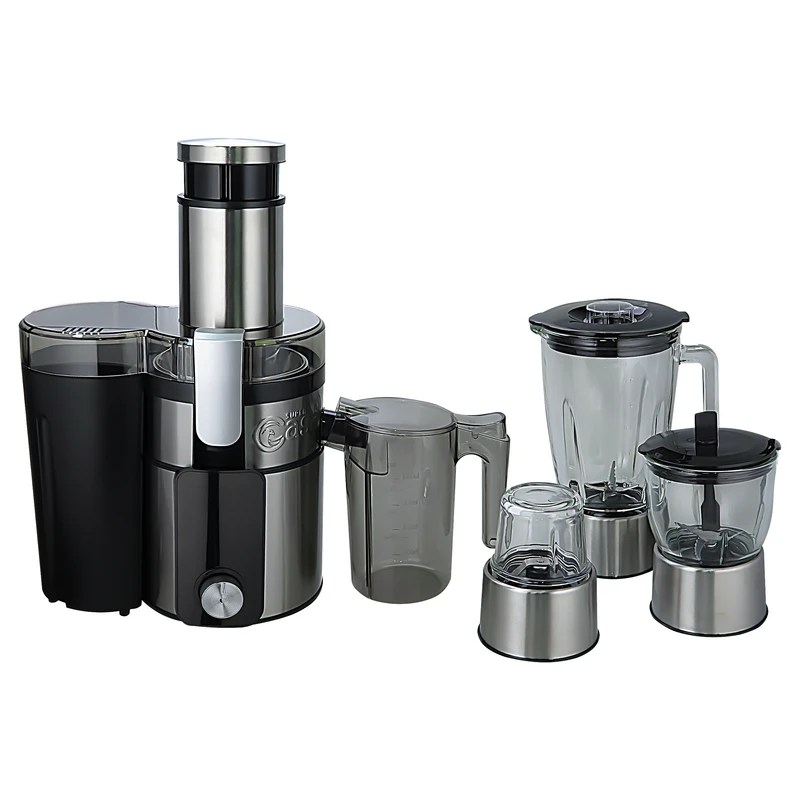 آبمیوه گیری چهار کاره سوپر کاسا با موتور پر قدرت ۱۰۰۰ واتی، دارای پارچ مخلوط کن و آسیاب و ظرف خردکن از جنس شیشه، دهانه ورودی بزرگ با سایز ۸۵ میلی متر با قابلیت آبگیری سیب کاملا درسته، مخزن تفاله مجزا با گنجایش ۲ لیتر، پارچ آبمیوه با گنجایش ۱ لیتر، دور موتور متغییر با سه سرعت قابل تنظیم، تیغه و صافی تمام استیل، قابلیت آبگیری میوه های سخت:هویج، کرفس، سیب و ….، طراحی و مهندسی محصول در کشور انگلستان مونتاژ نهایی در کشور چین