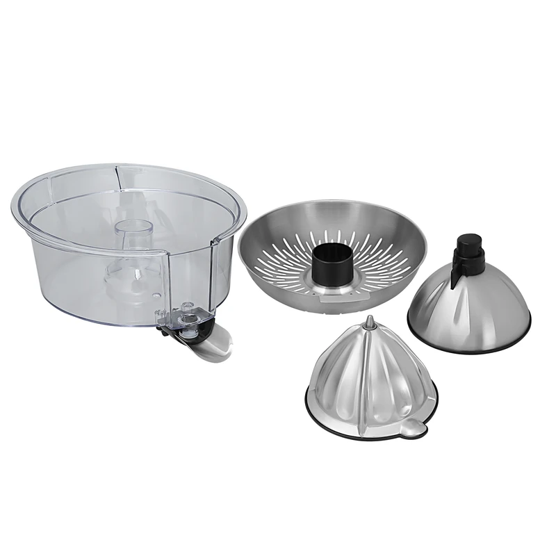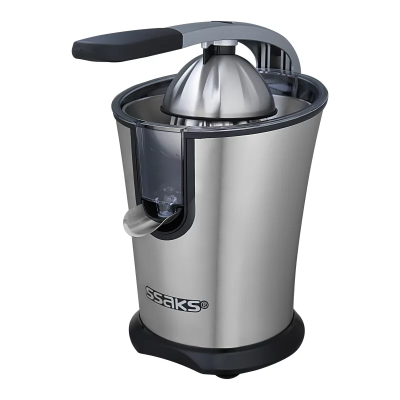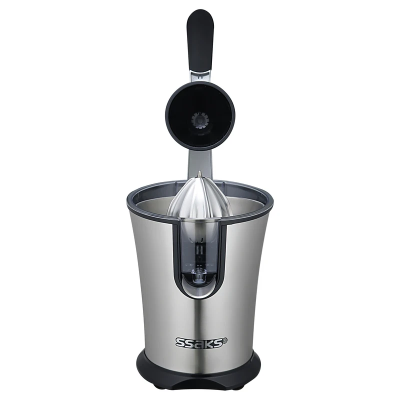 موتور پر قدرت با توان ۲۰۰ وات، قابلیت آبگیری: لیمو، پرتقال، انار، گریپ فروت، قسمت سری مرکبات گیری با روکشی از جنس استیل و طراحی جدید که براحتی میتوانید از لیمو ریز تا مرکبات درشت و انار را براحتی آبگیری کنید، صافی از جنس استیل، دارای مخزن جمع آوری آبمیوه با گنجایش تقریبی ۲ لیوان، قابلیت کنترل خروجی آبمیوه با قفل و باز کردن دهانه خروجی آبمیوه، دارای اهرم فشاری از جنس آلومینیوم بسیار مقاوم و همچنین دیگر نیازی به فشار آوردن جهت آبگیری میوه ها نیست و براحتی برای شما کار آبگیری را انجام میدهد، بدنه تمام استیل، لازم به ذکر است در این محصول فیوز حرارتی قرار گرفته است تا در زمان داغ شدن بیش از حد موتور مدار برق موتور را قطع میکند و نگرانی از بابت آسیب رسیدن به موتور وجود نخواهد داشت و بعد از خنک شدن موتور بصورت خودکار مجدد مدار برق دستگاه وصل میشود، قسمت نگه دارنده میوه و سری آبمرکبات گیر و همچنین مخزن دستگاه جدا شونده و قابل شستشو میباشد