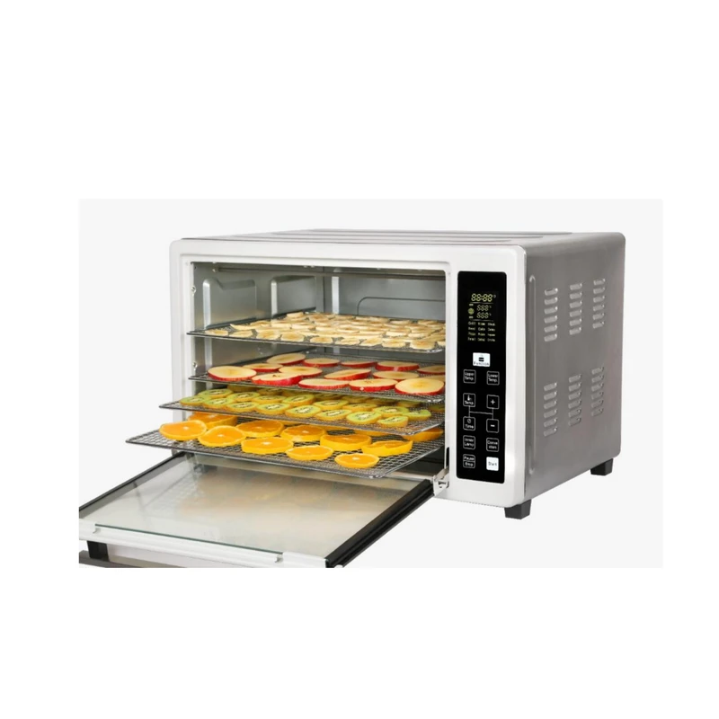 بدنه از جنس استیل ضد زنگ، درب از جنس شیشه دو جداره ضد حرارت، دارای دو المنت بالا و پایین، تایمر 24 ساعته، مجهز به میوه خشک کن