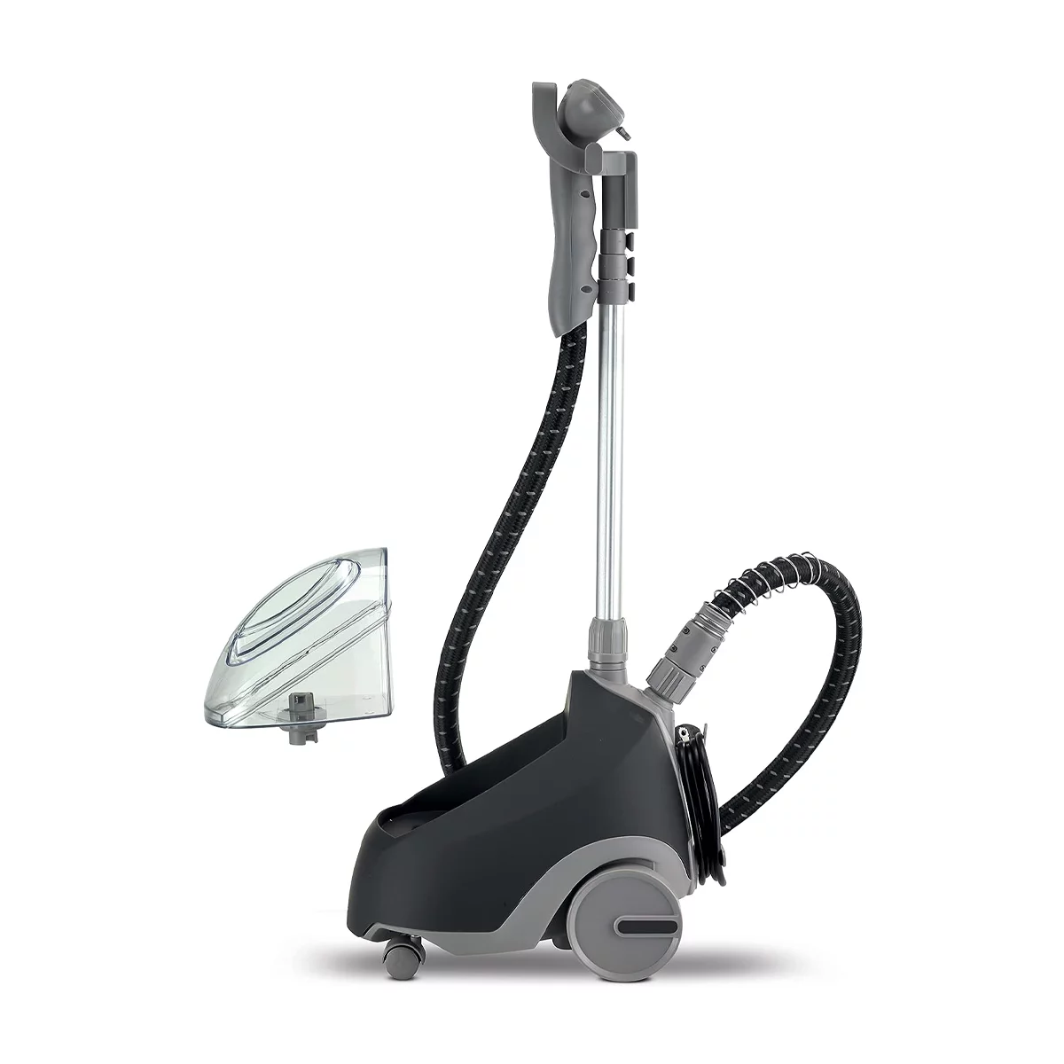 دارای 4 عدد چرخ در دو اندازه مختلف، مخزن قابل جدا شدن، قابلیت بخاردهی تا 60 دقیقه مداوم، دارای گیره مخصوص لباس و دستکش ایمنی، دارای برس مخصوص برای اتو کشی بهتر، لوله تلسکوپی برای آویزان کردن لباس های بلند با قابلیت تنظیم ارتفاع، لوله بخار کنفی برای کنترل حرارت و ایمنی دستگاه، دارای شلنگ کنفی، امکان استفاده در عرض 45 ثانیه و استفاده مداوم تا 50 دقیقه، دارای سری پرزگیر
