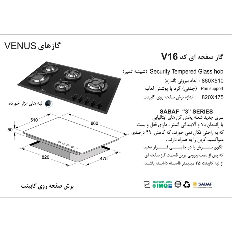 – قطعات اصلی ایتالیایی – لبه شیشه ابزار خورده – راندمان و احتراق ۲۵ درصد بالاتر از استاندارد – جوش آمدن سریعتر آب بطور قابل ملاحظه – کاهش زمان پخت – کاهش مصرف گاز و آلایندگی کمتر – کاهش ۴۹ درصدی منواکسید کربن – شعله پخش کن ها دارای قفل و بست