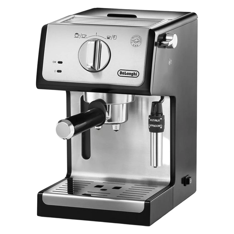 مخزن آب شفاف و جدا شدنی سیستم کف ساز قابل تنظیم : ۲ حالت کف شیر، کف شیر غلیظ و یا فقط شیر داغ قابلیت استفاده قهوه پودر (برای یک و یا دو فنجان) و همچنین پد قهوه (قهوه کیسه ای) کلید های مجزا برای حالت خاموش و روشن و انتخاب نوشیدنی اسپرسو و یا کاپوچینو به همراه چراغ نشانگر ۲ ترموستات مجزا به جهت کنترل دمای قسمت آب و بخار بصورت جداگانه اهرم باز کردن و تنظیم بخار خروجی محفظه جایگیری قطعات جانبی : شامل فیلتر برای یک فنجان قهوه، فیلتر برای دو فنجان قهوه و نیز فیلتر قهوه کیسه ای
