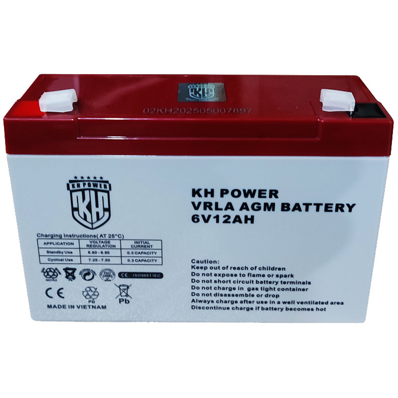 – طراحی کاملاً سیلد – ایمن برای استفاده در فضای بسته (بدون نشت اسید) – تحمل ضربه و لرزش – مناسب دستگاههای متحرک – شارژ سریع و آسان – بازدهی بالا با حداقل تلفات انرژی – عمر طولانی – فناوری کلسیم-کلسیم برای کاهش سولفاته شدن * شارژر مناسب برای این باتری: – برای شارژ ایمن و بهینه باتری KH Power 6V 12Ah، شارژر باید دارای این مشخصات باشد: ولتاژ خروجی: – حداکثر ولتاژ شارژ: 6.9 تا 7.2 ولت (ولتاژ شارژ شناور/Float: 6.75V) – – نکته: ولتاژ بالاتر از 7.5V به باتری آسیب میزند! جریان شارژ (A): – بهینه: 1.2 تا 1.8 آمپر (10%-15% ظرفیت باتری = 1.2A برای 12Ah) – حداکثر مجاز: 2.4A (20% ظرفیت) برای شارژ سریع (فقط در موارد ضروری). نوع شارژر مناسب: – هوشمند 3 مرحلهای (Bulk → Absorption → Float) – قطع اتوماتیک (Overcharge Protection) – تشخیص اتصال معکوس قطبها (Reverse Polarity Protection) – محافظت اضافه ولتاژ/کمولتاژ (Over/Under Voltage Protection) – محافظت اتصال کوتاه (Short Circuit Protection). * نحوه نگهداری و افزایش عمر باتری: – از دشارژ کامل (زیر 10.5V برای باتری 12V یا 5.25V برای باتری 6V) جلوگیری کنید. – در دمای بالای 50°C شارژ نکنید. – هر 3 ماه یکبار باتری را کاملاً شارژ کنید (در صورت استفاده نکردن).