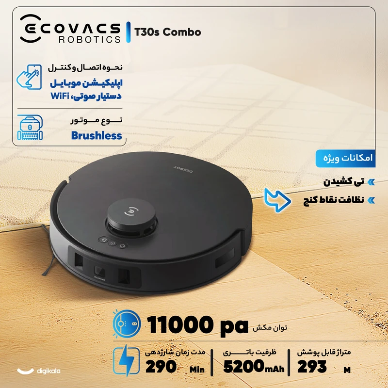 /دارای قابلیت بازشدن موپ پدها برای تمیز کردن کناره های دیوار و مبلمان و… کنترل لمسی با پا مجهز به دستیار صوتی YIKO - رنگ محصول