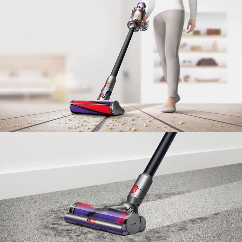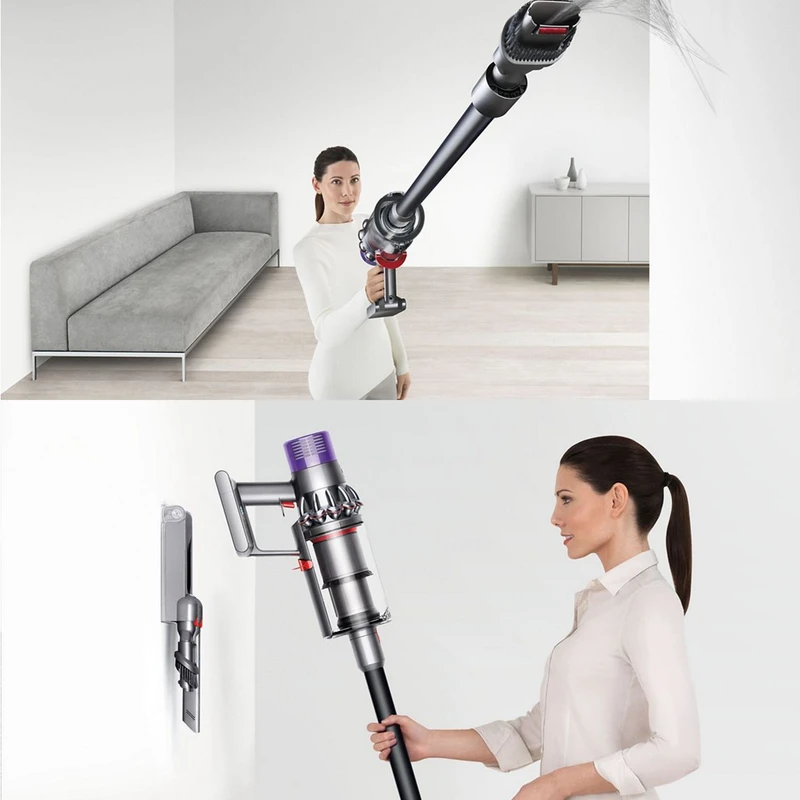 14 سیکلون چرخشی – جلوگیری از افت مکش در حین استفاده / دارای پایه شارژ دیواری / امکان تبدیل به جارو دستی / مجهز به دو سری نظافتی Motorbar™ و Soft roller / ابزار ترکیبی 2 در 1 و نازل شکاف، تمیز کردن گوشهها و فضاهای تنگ را بسیار آسان میکنند / دارای سه حالت مکش / دارای شانه گره زدایی / دارای موتور دیجیتال Dyson Hyperdymium / قابلیت چرخش حدود ۱۰۰۰۰۰ دور در دقیقه