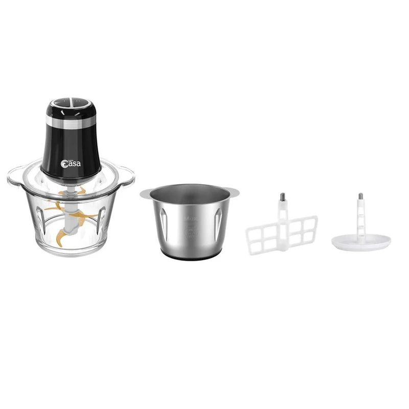 موتور پر قدرت با توان 500 وات،دارای دو کاسه یک کاسه شیشه ای و یک کاسه استیل با گنجایش 3 لیتر، قدرت موتور در دو سرعت قابل تنظیم، دارای سوئیچ ایمنی، دارای دو قطعه اکسسوری بسیار کاربردی شامل، پره همزن نرم و همزن خمیر، قابلیت استفاده مصارف روزمره شامل خردکردن گوشت، یخ، سیر، سیب زمینی، سبزیجات، پیاز و…..، قسمت انتهایی اتصال تیغه خردکن و شفت روی موتور از جنس فلزی میباشد که در دراز مدت ساییده نمیشود، تیغه خردکن از جنس تیتانیوم میباشد که در مصارف زیاد هم براحتی کند نمیشود، دارای 6 عدد تیغه که حجم زیاد مواد غذایی را به صورت یکدست خرد میکند، قسمت انتهایی پره های همزن نیز فلزی میباشد، طراحی و مهندسی در کشور انگلستان مونتاژ نهایی در کشور چین
