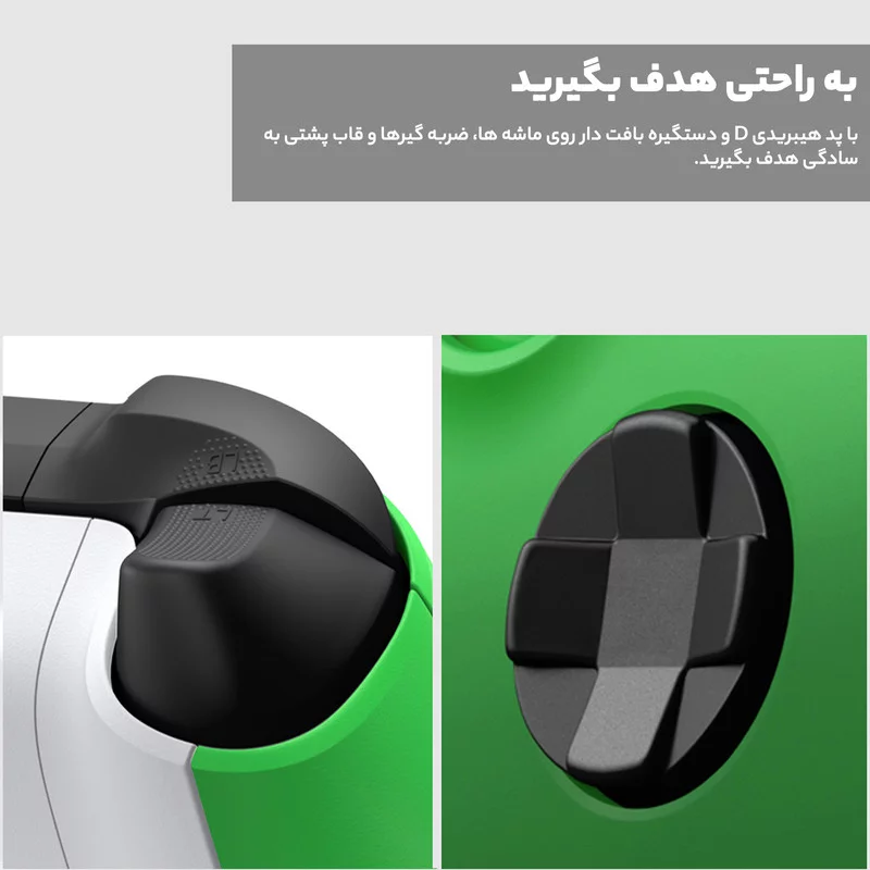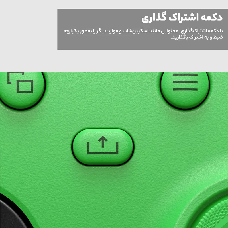 دسته xbox series x طرح Velocity Green با قابلیت ها و ویژگی های جدیدی که در بازار عرضه می شود به یکی از بهترین محصولات موجود در بازار تبدیل شده است. از مهم ترین ویژگی های این محصول می توان به آشنایی دست ها با دسته در صورتی که قبلا هم از محصولات Xbox استفاده کرده باشید اشاره نمود. همچنین بافت های لمسی و هندسی مورد استفاده در این محصول بهبود پیدا کرده اند تا راحت تر بتوانیم از دسته Xbox Series X و Xbox Series S استفاده داشته باشیم. اضافه شدن دکمه مربوط به اشتراک گذاری هم یکی دیگر از تغییراتی است که در دسته های این محصول قابل لمس می باشد. به طور کلی مایکروسافت در تلاش بوده است تا این محصول را با ارگونومی راحت تر در بازار عرضه کند و یک تجربه کاملا متفاوت را برای کاربران خود به ارمغان بیاورد. همچنین باید بدانید که از لحاظ ظاهری، این دسته ها دارای تفاوت هایی می باشند که باعث شده است تا گیمرهای بیشتری به طراحی مایکروسافت در خصوص کنترلر کنسول گیمینگ علاقمند شوند.