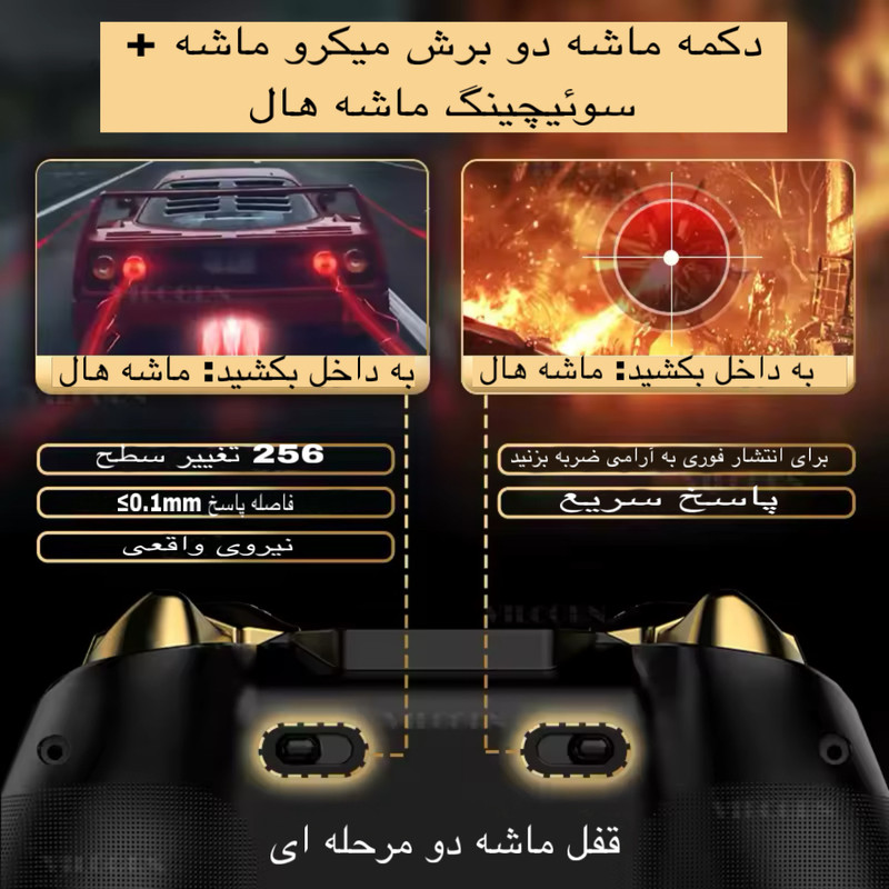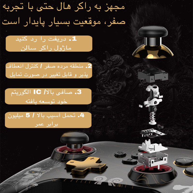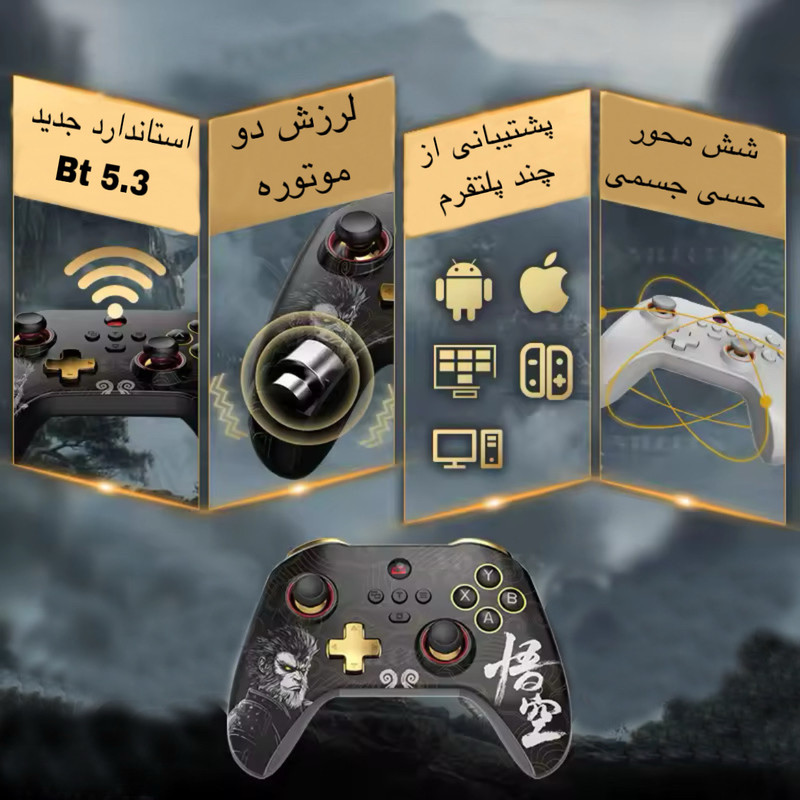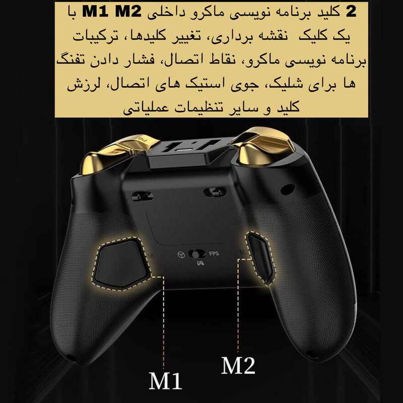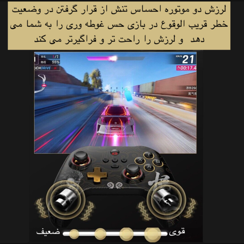 طراحی ارگونومیک- دارای سه حالت مسابقه ای/عادی/FPS حالت لرزش موتور- همراه با دفترچه راهنما- کابل شارژ usb type c