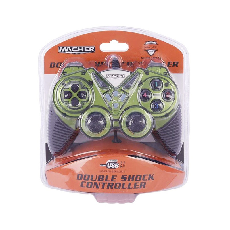 دسته بازی شوک دار مچر مدل MR59 اتصال باسیم از طریق کابل با رابط USB، طراحی ارگونومیک متریال ساخت بدنه پلاستیک با کیفیت مقاوم در برابر ضربه و فشار احتمالی پشتیبانی از اتصال Plug and Play بدون نیاز به نصب نرم افزار سازگار با کامپیوتر و لپ تاپ دارای 18 کلید فیزیکی و دو شوکر قدرتمند، موفق به کسب استاندارد سلامت و ایمنی محصول CE / FC / RoHS