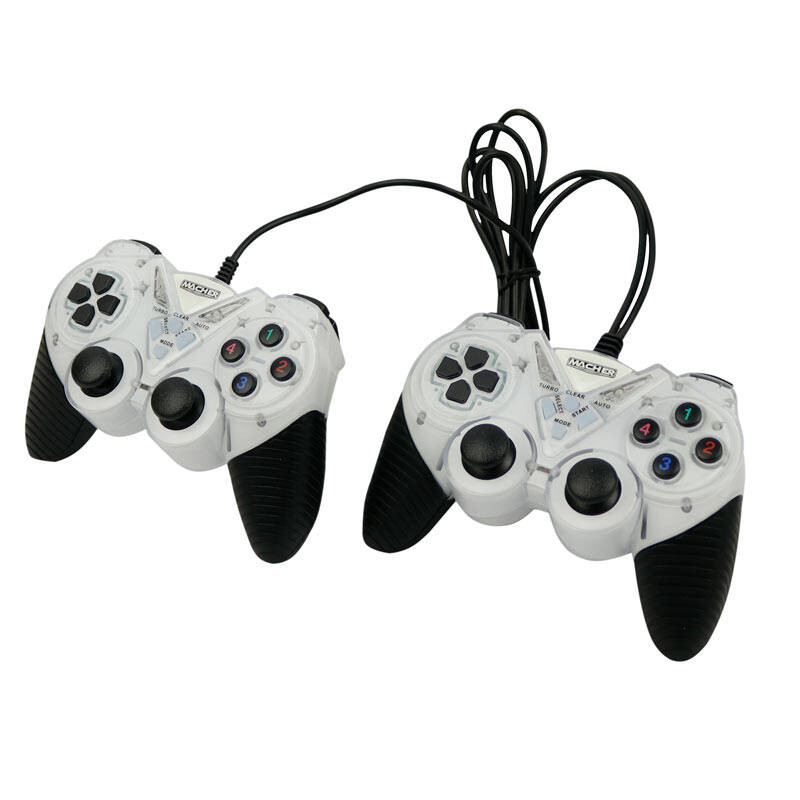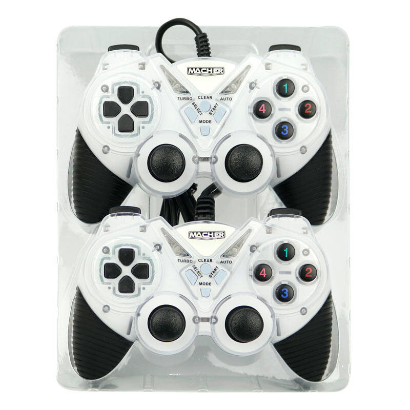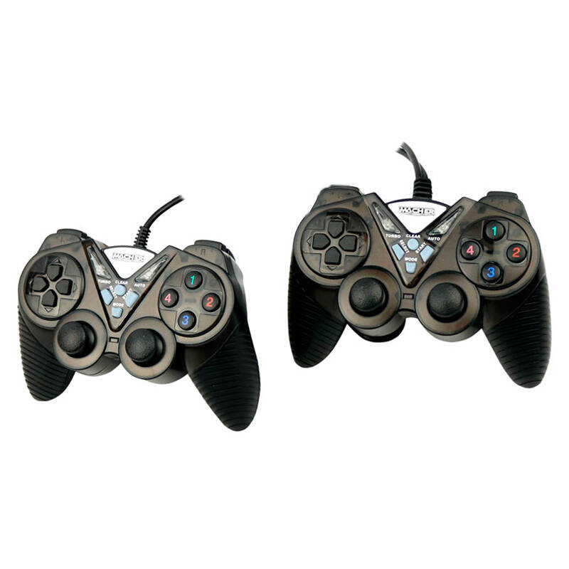 دو دسته ساخته شده از پلاستیک با کیفیت، دارای کابل متصل با رابط USB به طول 140 سانتی متر با پشتیبانی از قابلیت Plug and Play بدون نیاز به نصب نرم افزار سازگار با کامپیوتر و لپ تاپ با طراحی ارگونومیک جهت قرارگیری بهتر در دست ها، دارای 18 کلید، مجهز به شوک موفق به دریافت استاندارد سلامت محصول CE