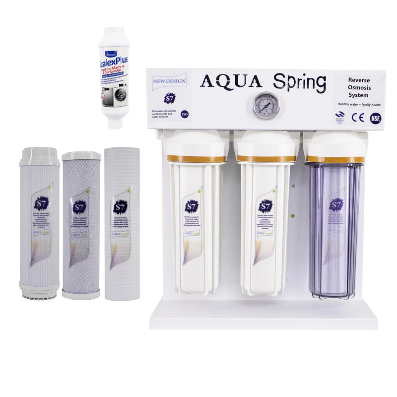 دستگاه تصفیه کننده آب آکوآ اسپرینگ مدل RO-S7-WZ 7550 به همراه فیلتر مجموعه سه عددی و رسوبگیر اسکالکس پلاس