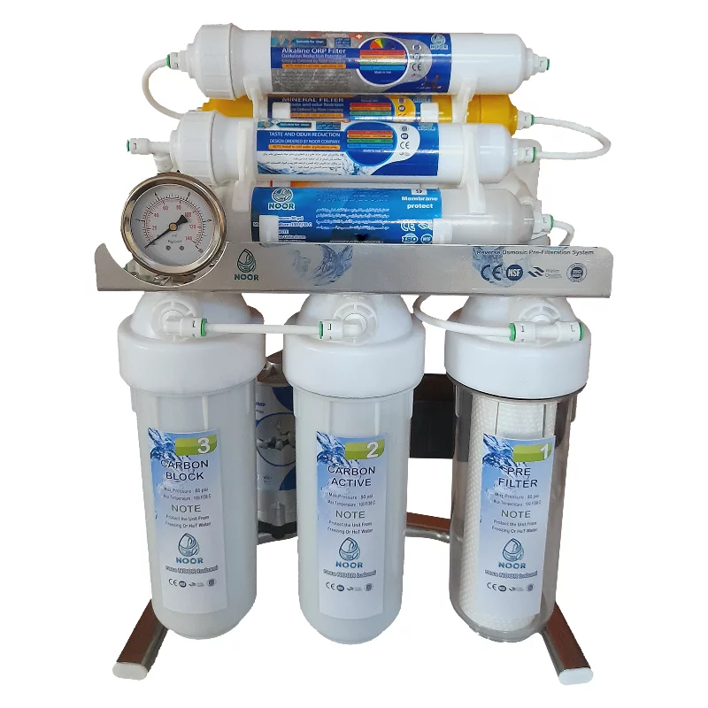 فیلتر p.p یک میکرون 150 گرم ، فیلتر کربن اکتیو ، فیلتر کربن بلاک ، فیلتر ممبران film tec ، فیلتر پست کربن ، فیلتر معدنی یا مینرال ، فیلتر قلیایی ، فیلتر محافظ ممبران