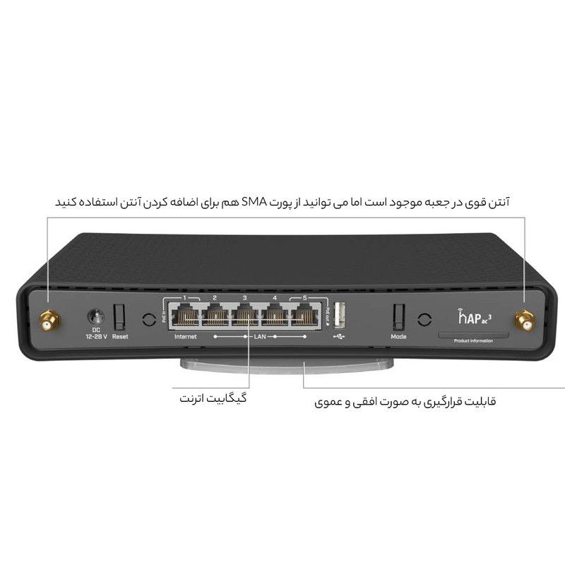 قابلیت روتینگ و مسیریابی با مجوز سطح دسترسی Level 4 در سیستم عامل Router OS پورت 5 قابلیت POE OUT به منظور تامین جریان برق دستگاه دیگر با ولتاژ و استاندارد مشابه 1 عدد پورت USB Type A برای اضافه کردن فضای ذخیره سازی بیشتر سرعت پردازنده 716 مگاهرتز چهار هسته ایی 256 مگابایت حافظه رم