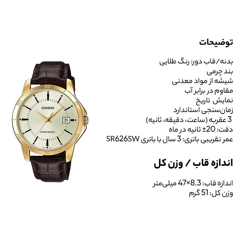 ساعت عقربه ای کاسیو مردانه مدل MTP-V004GL-9AUDF