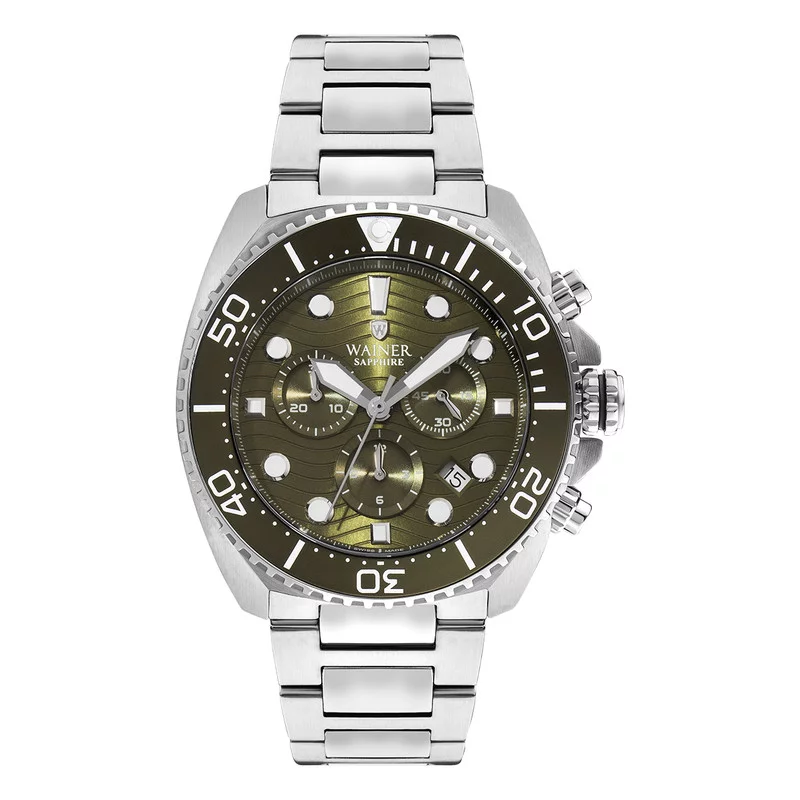 تاریخ شمار ، صفحه طرح دار ، عقربه های شب تاب ، شیشه ضدخش ، کرنوگراف