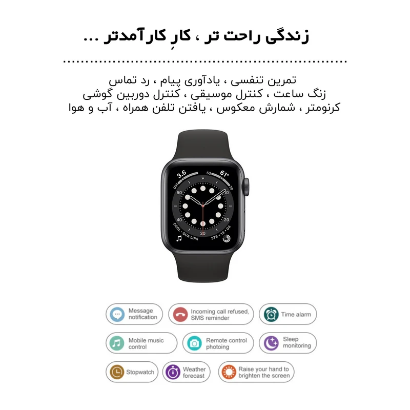 صفحه نمایش رنگی ، صفحه نمایش لمسی ، کنترل موسیقی (Music Player) ، کنترل سطح اکسیژن خون