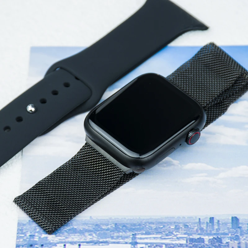 رنگ بدنه ساعت مشکی به همراه یک عدد بند سیلیکونی مشکی و بند فلزی میلانس مشکی / رنگ بدنه ساعت نقره ای به همراه یک عدد بند سیلیکونی خاکستری و بند فلزی میلانس نقره ای