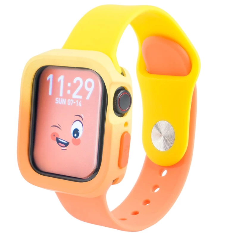 رنگ های کاور دور ساعت و بند ها (رنگ آبی با بند سیلیکونی آبی و سفید و کاور دورنگ آبی-سفید / رنگ سبزآبی با بند سیلیکونی سبزآبی و خاکستری و کاور دورنگ سبزآبی-سفید/رنگ صورتی با بند سیلیکونی صورتی و سفید و کاور دورنگ صورتی-سفید / رنگ نارنجی با بند سیلیکونی نارنجی و زرد و کاور دورنگ نارنجی-زرد)