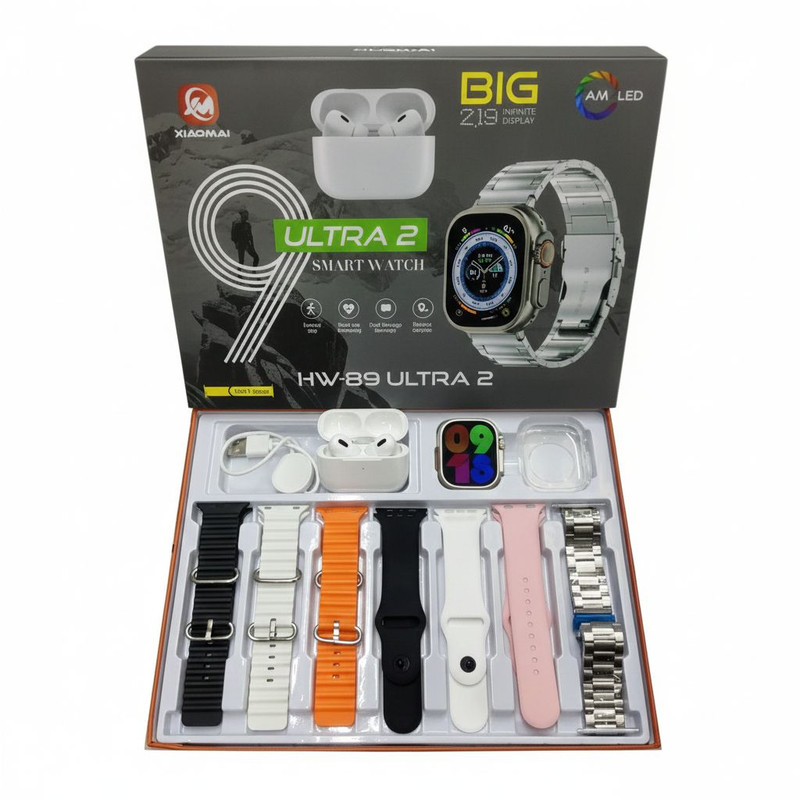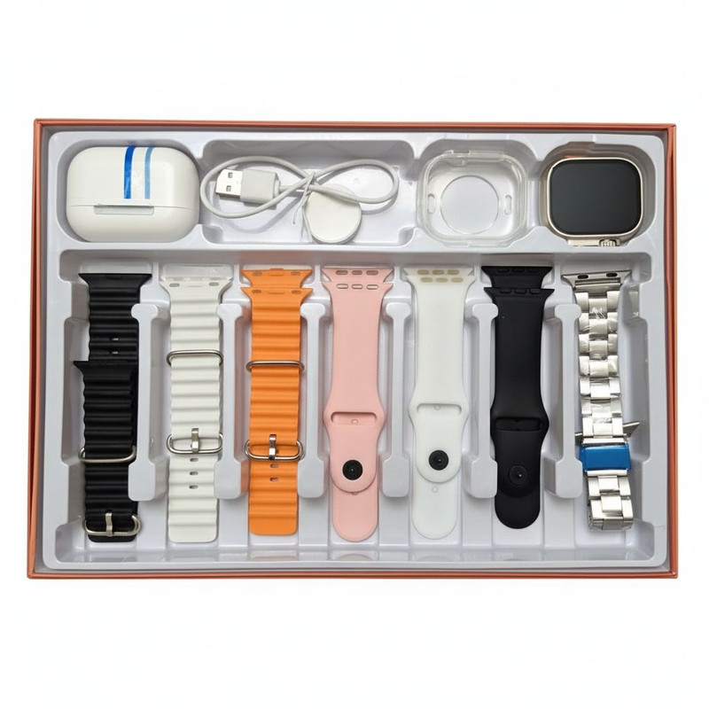 ساعت هوشمند 49 میلی متری شیائومای مدل 10in1 با 7 بند سیلیکونی به همراه هدفون بلوتوثی و کاور محافظ