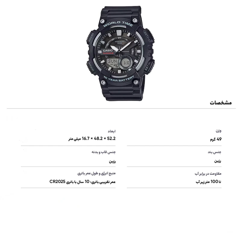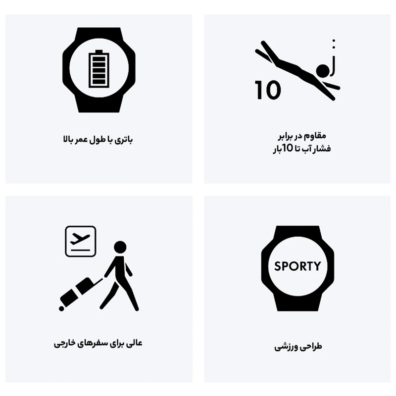 ساعت جهانی، زمان سنج، تایمر شمارش گر معکوس، دارای 3 زنگ هشدار مجزا، نمایش تاریخ کامل، زمان سنج، تایمر صدادار
