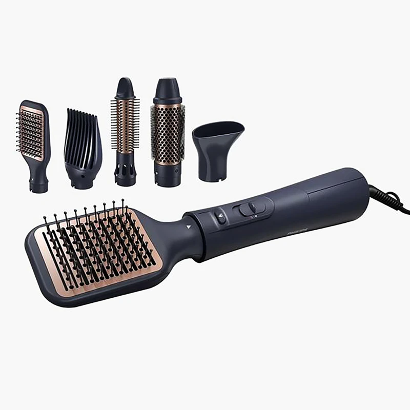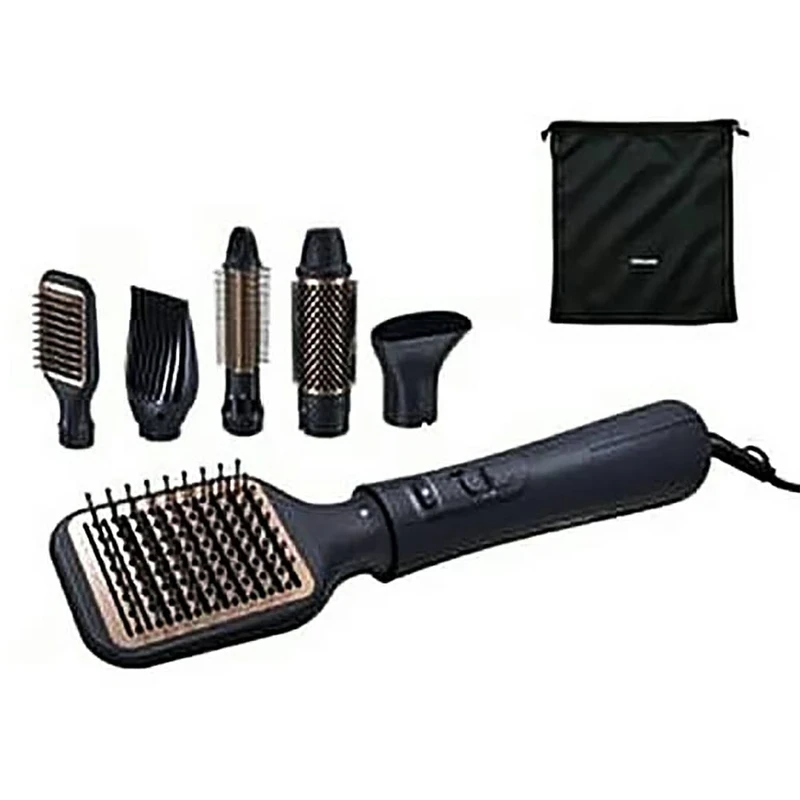 سشوار دارای 4 برابر ایونیک بیشتر ( اسیب ب مو ندارد و مو را فریز میکند ) – برس ها سرامیکی آغشته به روغن ارگان برای تقویت مو و جلوگیری از اسیب – تنظیم حرارت 3 گانه قابل تنظیم – 5 سری برای هر گونه حالت دهی ( حالت دهنده 30 میل و 38 میل – برسی برای صافی – متمرکز کننده و خشک کننده ) – سیم گردان – باد سرد