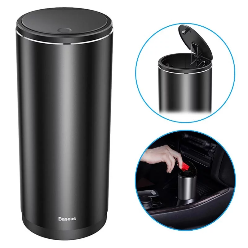 این سطل زباله تولید شده توسط باسئوس بوده که به شکلی استوانه ای داشته و ظاهری زیبا با اندازه کوچک دارد به گونه ای که ابعاد آن 16.5x7x7 سانتی متر است و این خصوصیت باعث شده که جای کمی را در ماشین بگیرد و به شیک تر شدن ظاهر فضای داخل ماشین کمک کند. این کالا دارای یک بسته رول پلاستیک 30 عددی است که می توان از آن ها استفاده کرد و لازم به ذکر است که این سطل جنس آلیاژ آلومینیوم و ABS بوده که به آن استقامت بالایی داده است. این محصول دری دارد که با کلیک کردن بر روی آن باز شده و به همین صورت به سادگی بسته می شود.