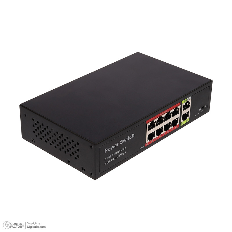 هشت عدد پورت POE با سرعت 10/100 مگابیت برثانیه / دو عدد پورت UPLink با سرعت 100 مگابیت برثانیه