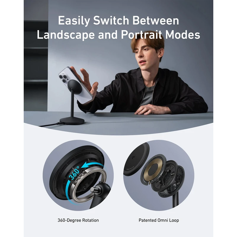 شارژر 3 در 1 سازگار با شارژ بی سیم مغناطیسی / زاویه شارژ قابل تنظیم تا 70 درجه / مجهز به فناوری ایمنی ActiveShield 2.0 برای کنترل دمای دستگاه