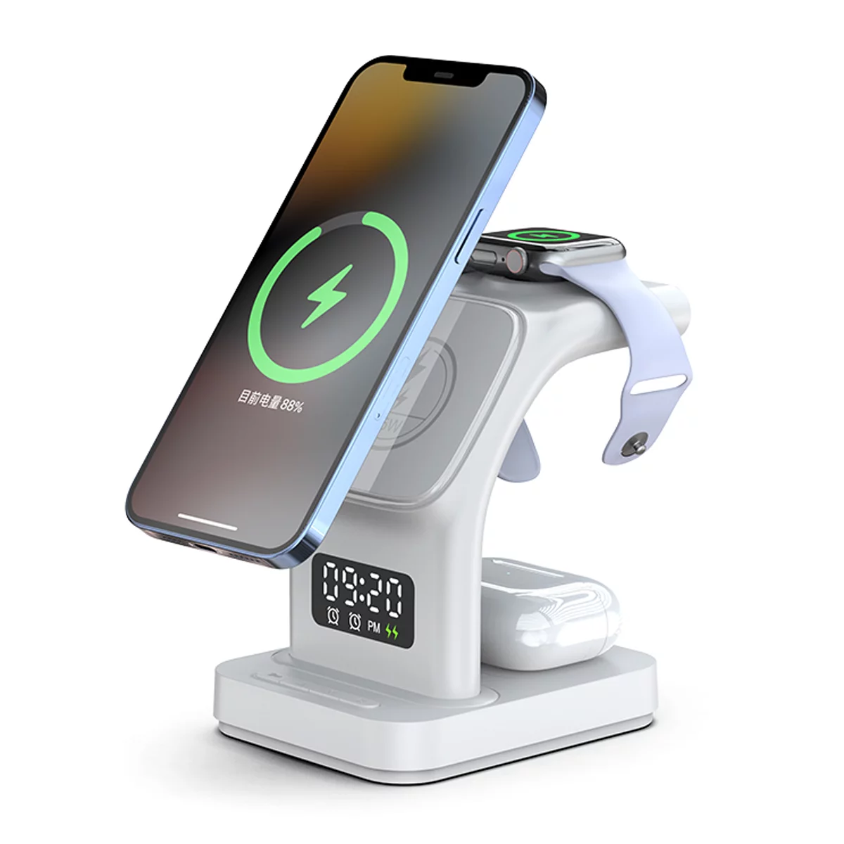 دارای ساعت دیجیتال با قابلیت آلارم، دارای لامپ روشنایی LED با قابلیت تنظیم در سه درجه روشنایی، توان شارژ گوشی موبایل 15 وات، ساعت هوشمند 2.5 وات، ایرپاد 5 وات