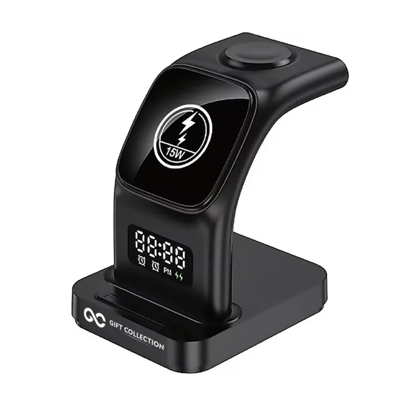 1-قابلیت شارژ گوشی موبایل تا حداکثر توان 15 وات 2-قابلیت شارژ ساعت های هوشمند با حداکثر توان 2.5 وات 3-قابلیت شارژ هدفون با حداکثر توان 3 وات 3-قابلیت گذاشتن زنگ هشدار 5-قابلیت نمایش ساعت 6-قابلیت تغییر فرمت ساعت به 12 و 24 ساعته 7- دارای چراغ شب برای جلوه زیبایی