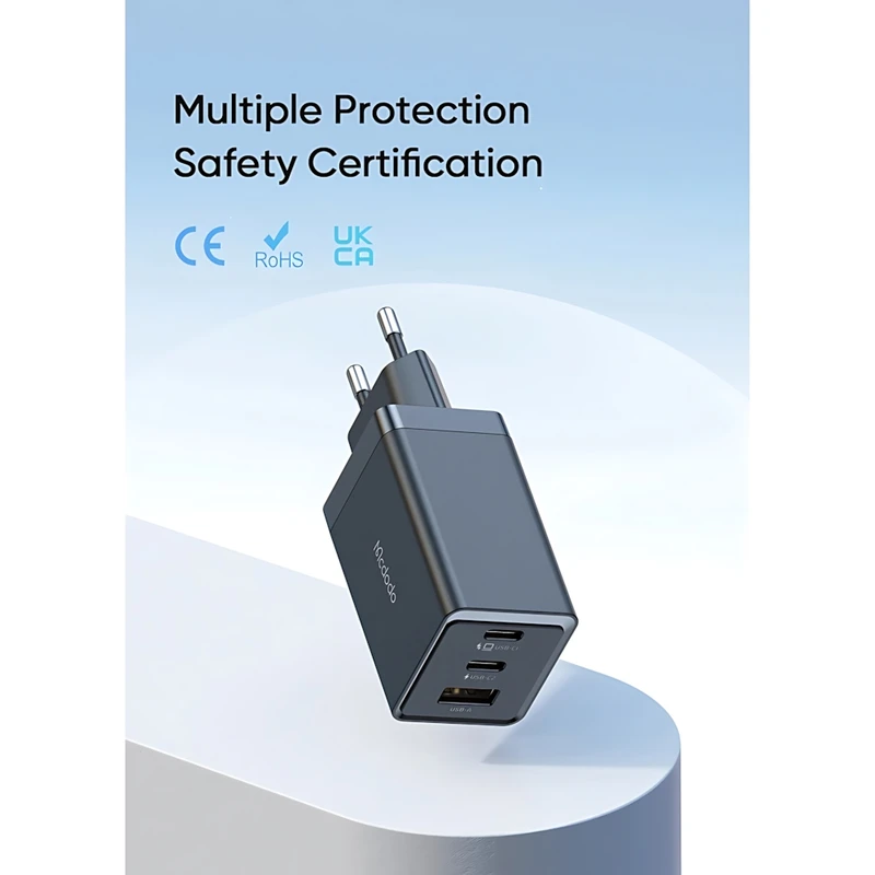 پشتیبانی از انواع پروتکل های شارژ سریع PD3.0/ PD2.0/ QC4.0/ QC3.0/ QC2.0/ SCP/ FCP/ AFC/ BC1.2/ Apple 2.4A, سازگاری کامل با برندهای Apple, Huawei, Samsung, Oppo, Meizu, Lenovo, HP, Microsoft, Dell و سایر برندها, دارای دوشاخه پریز تقویت شده اروپایی با سازگاری کامل با پریزهای ایران بدون نیاز به تبدیل, کالای اورجینال مک دودو واردات انحصاری تیم تکنیک تل, دارای تکنولوژی PowiGaN, طراحی مینی و فوق سبک با بهره مندی از پیشرفته ترین تکنولوژی نیمه هادی گالیم نیترید GaN 5 Pro ابعاد و حجم بسیار کوچکتر با توان و راندمان بسیار بالاتر و عدم بالارفتن حرارت و داغ کردن, دارای تراشه هوشمند تشخیص دستگاه متصل شده به آداپتور و انتقال بالاترین توان موردنیاز خاص آن دستگاه به منظور حفاظت از باتری دستگاه شما