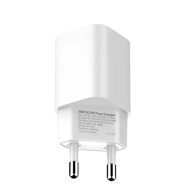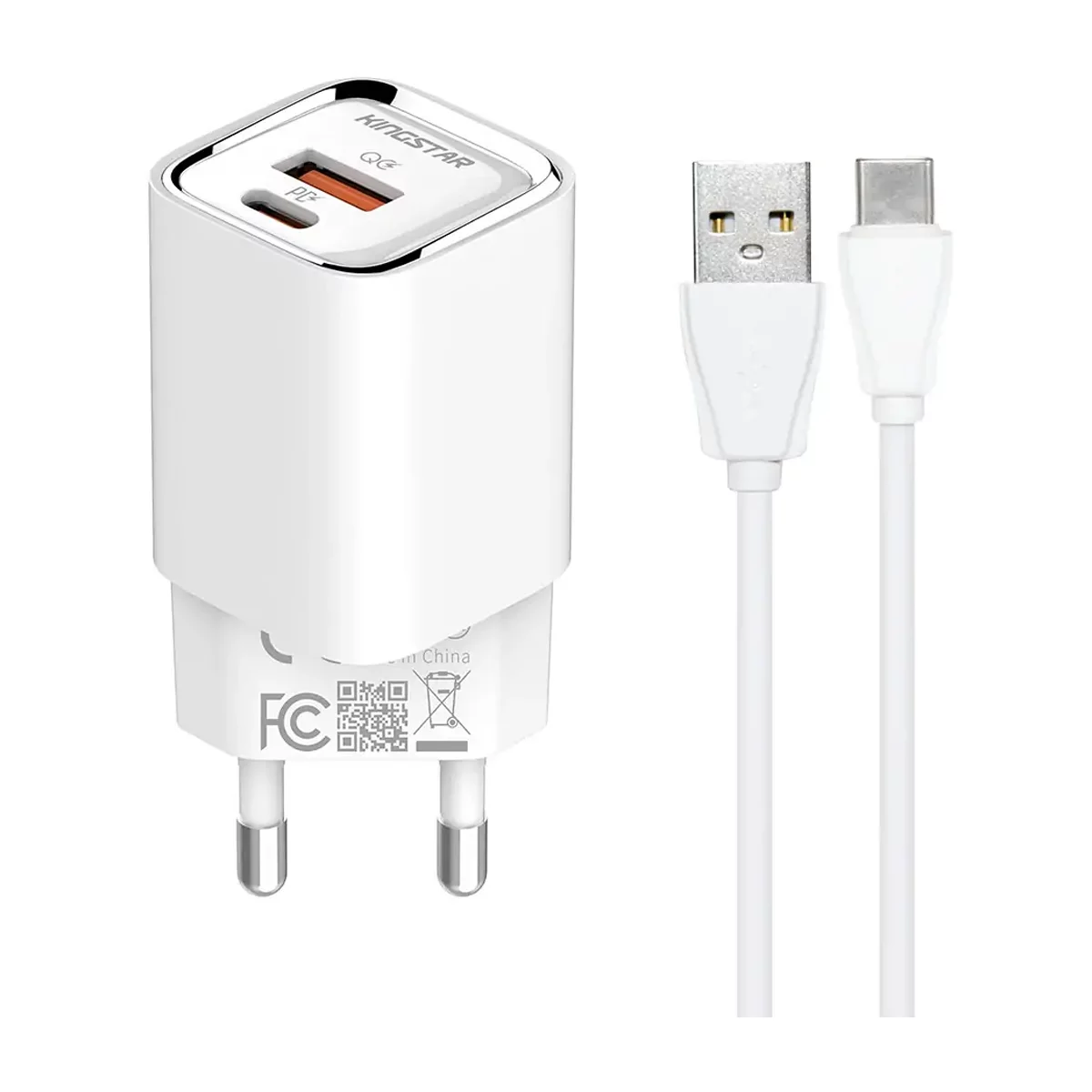 شارژر دیواری کینگ استار مدل KW180PD توان 30 وات به همراه کابل تایپ سی