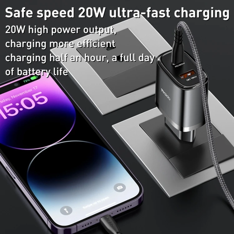 شارژر دیواری یسیدو 20 وات مدل YC50 به همراه کابل تایپ سی