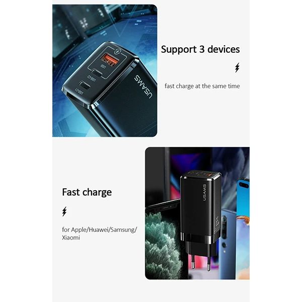 امکان شارژ تبلت (با شدت جریان 2.0 آمپر و بالاتر) ، امکان شارژ کردن سریع تر موبایل (با شدت جریان 2.0 آمپر و بالاتر) ،دارای فناوری QC2.0, QC3.0, PD 3.0، سه پورت Fast Charge