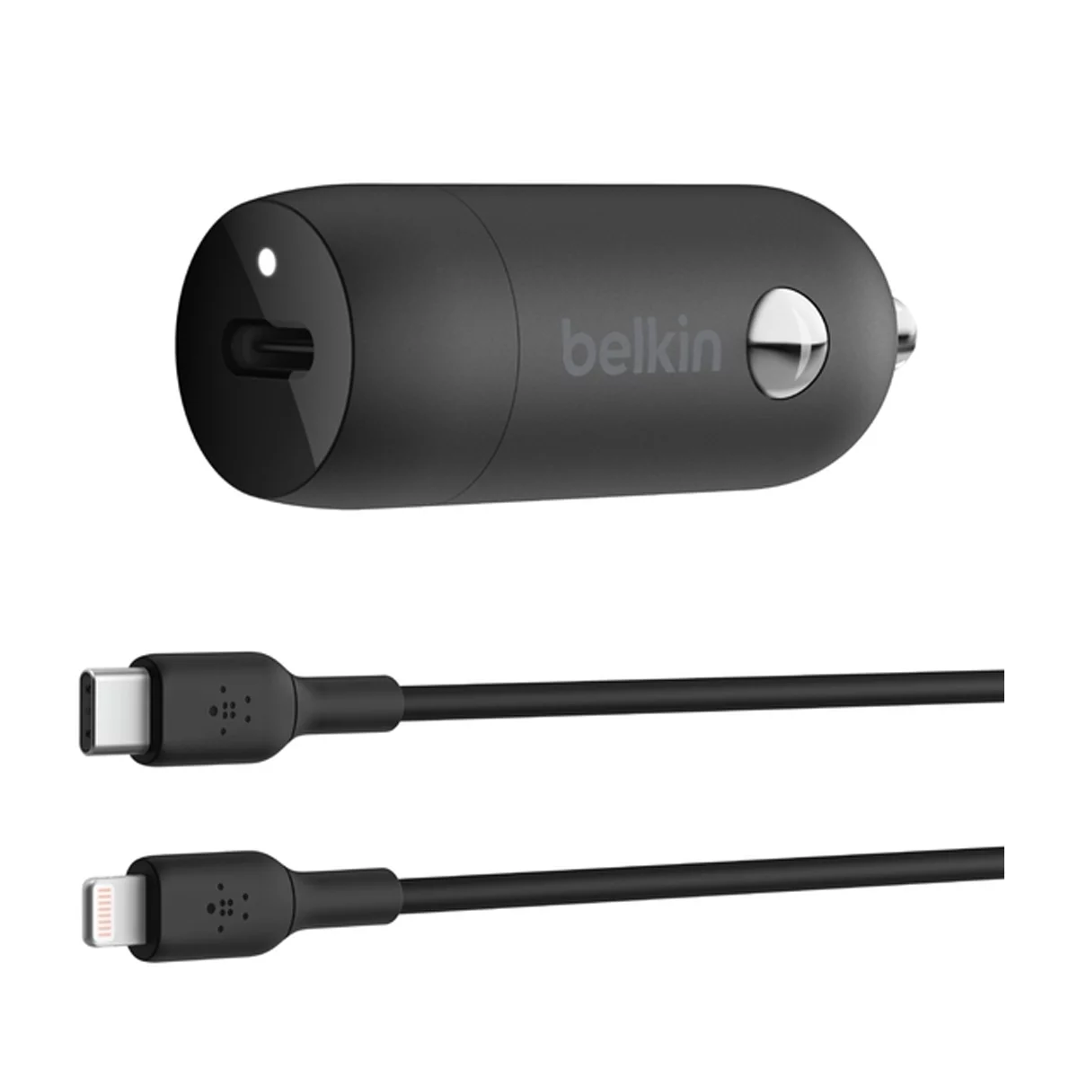 شارژر فندکی بلکین مدل CCA004bt توان 30 وات به همراه کابل USB-C به لایتنینگ