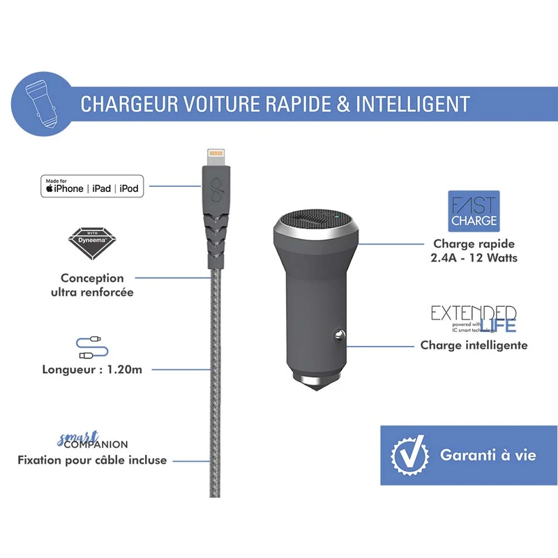 شارژر فندکی فورس مدل FPCACMFIN1.2MG توان ۱۲ وات + کابل لایتنینگ