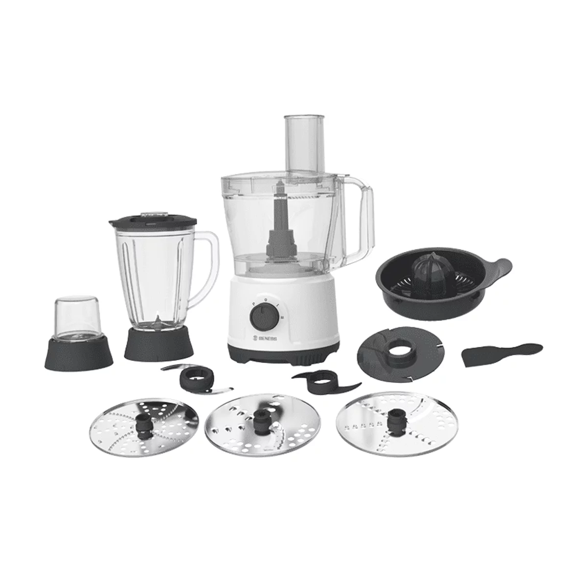 عملکرد چند کاره : خامه زن (امولوسیون) ، آسیاب ، آب پرتقال گیر ، مخلوط کن ، دیسک حلقه ای ، دیسک خلالی ، دیسک رنده ریز و درشت ، خرد کن
