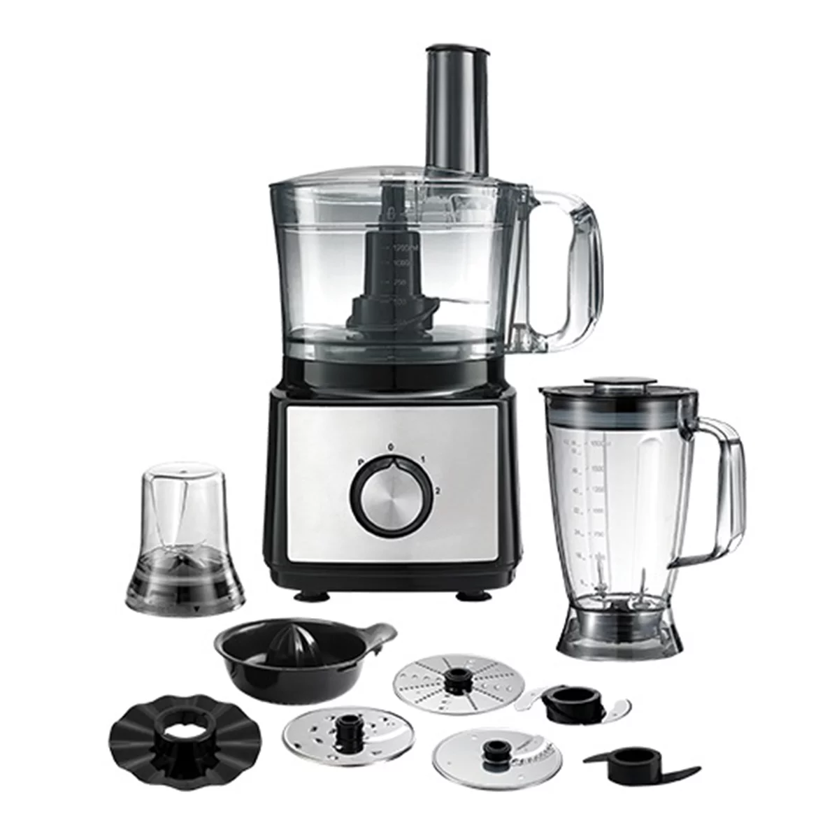 دارای تیغه های برش استيل برای قطعات ریز و درشت، تیغه پلاستیکی خمیر زن، دارای پد لرزش گیر، دارای پد لرزش گیر، دارای پد لرزش گیر