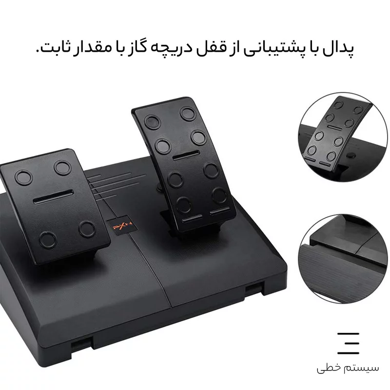 ابعاد: 27x23x10.24cm تاریخ عرضه: 3 اردیبهشت 1399 سازنده: PXN مناسب: پلی استیشن 4 - پلی استیشن 3 - ایکس باکس وان - رایانه شخصی (ویندوز 10 و 7) رنگ: مشکی طول کابل: ۲ متر جعبه دنده: دارد جنس فرمان: پلاستیک سایر قابلیتها: دارای موتور لرزاننده - قابلیت برنامه ریزی قابلیت نصب: نصب روی میز قطر فرمان: 26 سانتی متر نوع اتصال: کابل USB پدالها: دو پدال گاز و ترمز چرخش فرمان: 180 درجه