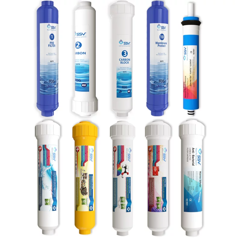 – فیلتر الیافی پلی پروپیلن (PP) – فیلتر کربن اکتیو گرانول (Activated Granola Carbon ) – فیلتر کربن بلاک (Carbon Block) – محافظ ممبران (Membrane Guard) – فیلتر ممبران (R.O) – فیلتر کربن نهایی (Post Carbon) – فیلتر مواد معدنی (Mineral) – فیلتر قلیایی (Alkaline) – فیلتر اکسیژن ساز (Infrared) – فیلتر نانوسیلور (Nano Silver)