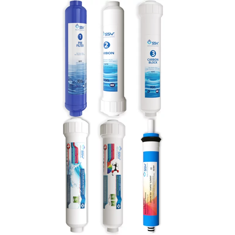 – فیلتر الیافی پلی پروپیلن (PP) – فیلتر کربن اکتیو گرانول (Activated Granola Carbon ) – فیلتر کربن بلاک (Carbon Block) – فیلتر ممبران (R.O) – فیلتر کربن نهایی (Post Carbon) – فیلتر قلیایی (Alkaline)