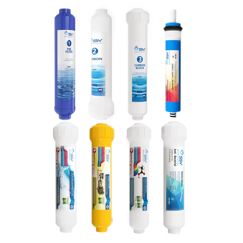 کربن پودری (Carbon Active) ، الیافی (PP) ، پست کربن (Post Carbon) ، فیلتر نانو (NANO) ، قلیایی (Alkaline) ، کربن بلاک (Carbon Block) ، ممبران (Membrane) ، مینرال (Mineral)