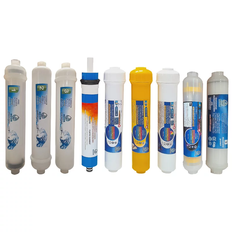 کربن پودری (Carbon Active) ، الیافی (PP) ، پست کربن (Post Carbon) ، فیلتر اکسیژن ساز (INFRARED) ، فیلتر اولیه (پیش فیلتر) ، فیلتر بوزدا ، قلیایی (Alkaline) ، ممبران (Membrane) ، مینرال (Mineral)