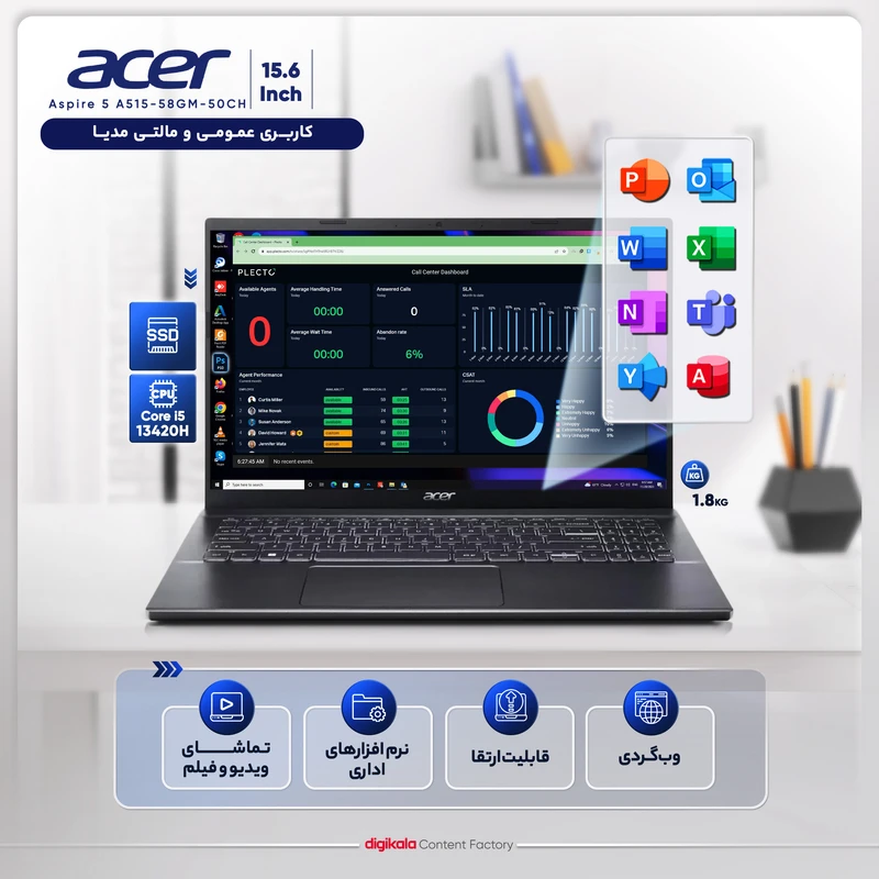 لپ تاپ ایسر 15.6 اینچی مدل Aspire 5 A515 i5 13420H 8GB 512GB