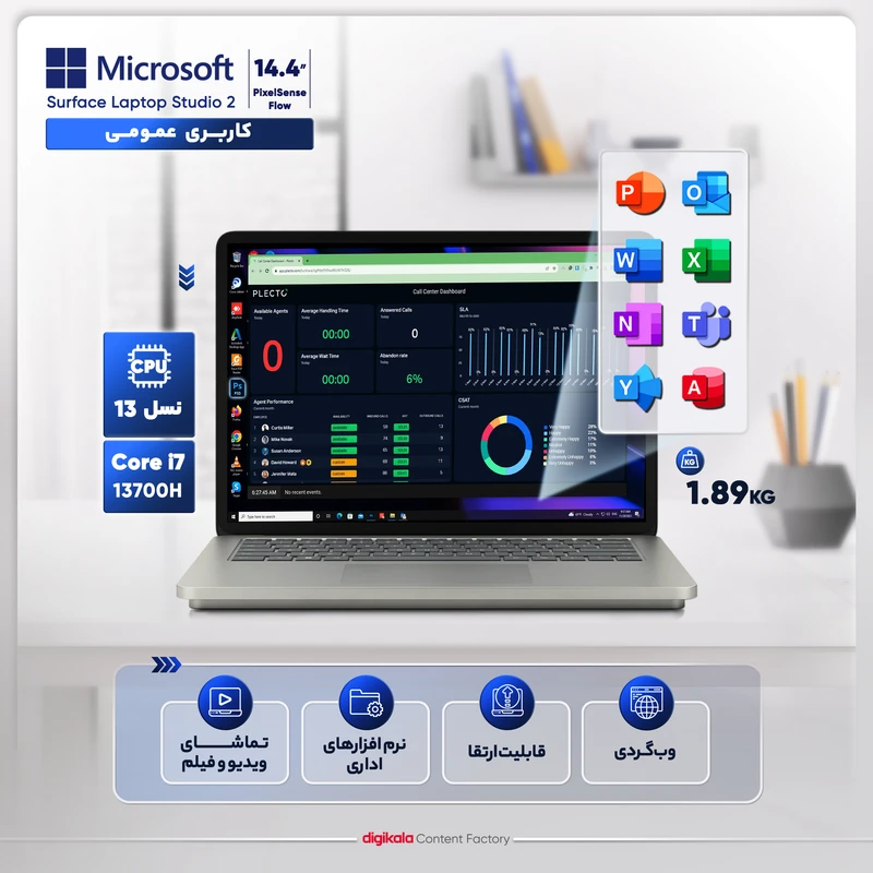 کیبورد با دکمه Copilot و نور پسزمینه سفید / سنسور سنجش نور محیط / دارای میکروفون داخلی دوگانه با قابلیت Voice Focus / چیپ امنیتی TPM ۲.۰ و با پشتیبانی از BitLocker