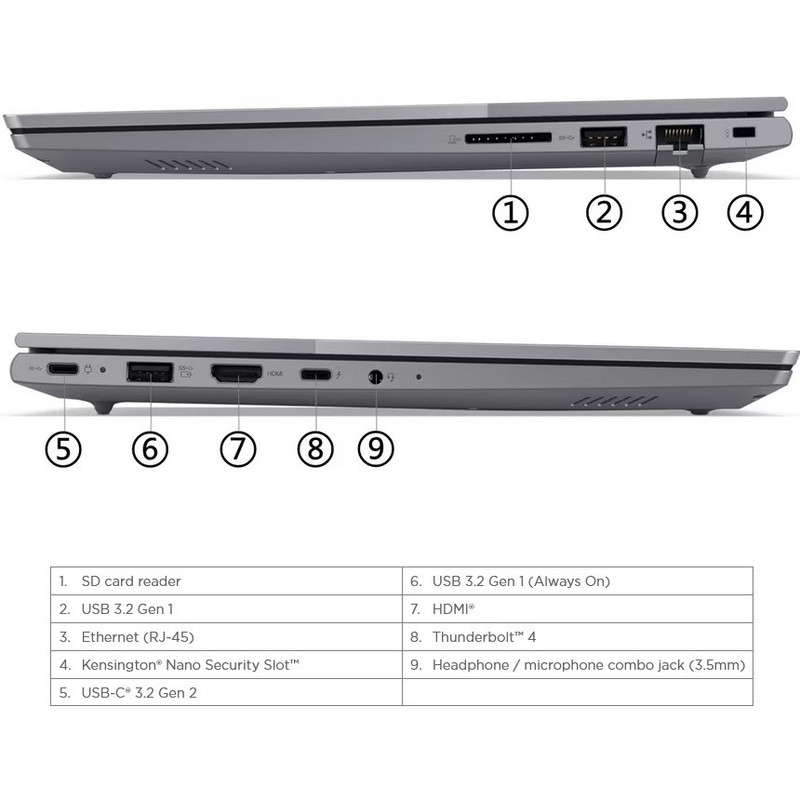دو درگاه USB-C (یک عدد Thunderbolt۴ و یک عدد USB-C ۳.۲ Gen ۲، هر دو با پشتیبانی از شارژر Power Delivery و DisplayPort) / دو درگاه USB-A (Gen ۱، یک عدد با قابلیت Always On)
