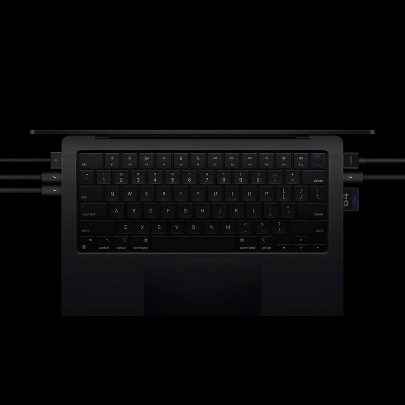 سه درگاه USB-C (از نوع USB 4.0/Thunderbolt 4 با پشتیبانی از شارژر (تایید شده توسط اپل) و خروجی تصویر (DisplayPort)) / پشتیبانی از دو نمایشگر با وضوح 6K,60Hz یا 4K,144Hz از طریق پورت Thunderbolt و یک نمایشگر با وضوح 8K,60Hz یا 4K,240Hz از طریق پورت HDMI