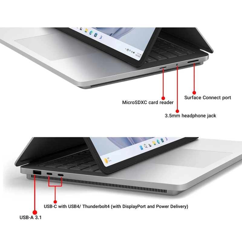 صفحه نمایش لمسی با پشتیبانی از ۱۰ لمس همزمان، طراحی شده به صورت اختصاصی برای قلم Surface Slim Pen ۲ با قابلیت شارژ قلم با قسمت زیرین کیبوردهای قابل پشتیبانی و پشتیبانی از قلم‌های Microsoft Pen (MPP)، تراکم پیکسلی ۲۰۰ پیکسل بر اینچ، کنتراست ۱۵۰۰:۱، پروفایل‌های رنگ sRGB و Enhanced، کالیبره پیش‌فرض رنگ و قابلیت تنظیم رنگ تطبیقی، قابلیت Dolby Vision IQ و VESA DisplayHDR ۴۰۰، محافظ صفحه Corning Gorilla Glass ۵