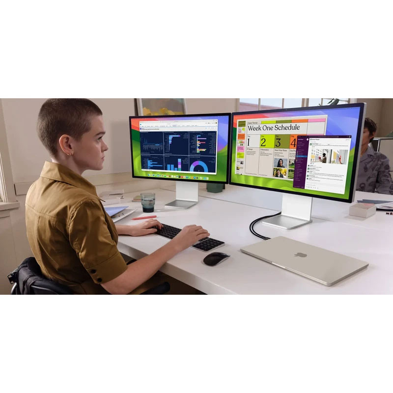 صفحه نمایش رتینا با تکنولوژی IPS / میزان روشنایی صفحه نمایش: 500 نیت / توانایی نمایش 1 میلیارد رنگ / پشتیبانی از Wide color (P3) و تکنولوژی True Tone / پشتیبانی از صفحه نمایش ثانویه با وضوح تا 6K و نرخ 60 هرتز / پشتیبانی از HDR with Dolby Vision, HDR10 و HLG در صفحه نمایش جانبی (با قابلیت پشتیبانی امکانات مذکور)