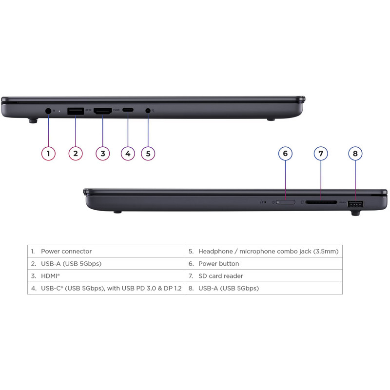 یک عدد (از نوع USB ۳.۲ Gen ۱ با سرعت ۵ گیگابیت بر ثانیه، با پشتیبانی از DisplayPort ۱.۲ و شارژ PD ۳.۰)